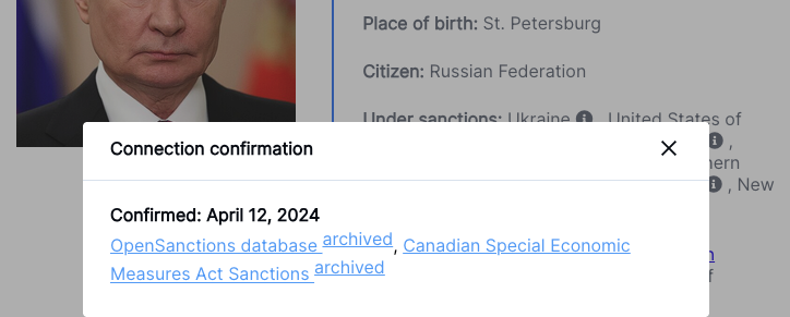 <figure><img src="https://1607018381-files.gitbook.io/~/files/v0/b/gitbook-x-prod.appspot.com/o/spaces%2FFuL0vtRVpXHiKZgFkMFR%2Fuploads%2Fgit-blob-d959ad2a0fc5a25862ad2c3314dbd096c07ec393%2FScreenshot%202026-01-12%20at%2011.49.22.png?alt=media" alt=""><figcaption><p>Click on the 'i' icon to get more information about those sanctions</p></figcaption></figure>